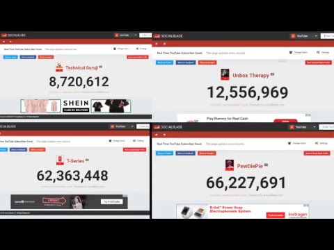 live count technical guruji vs unbox therapy and T-series vs piediepie